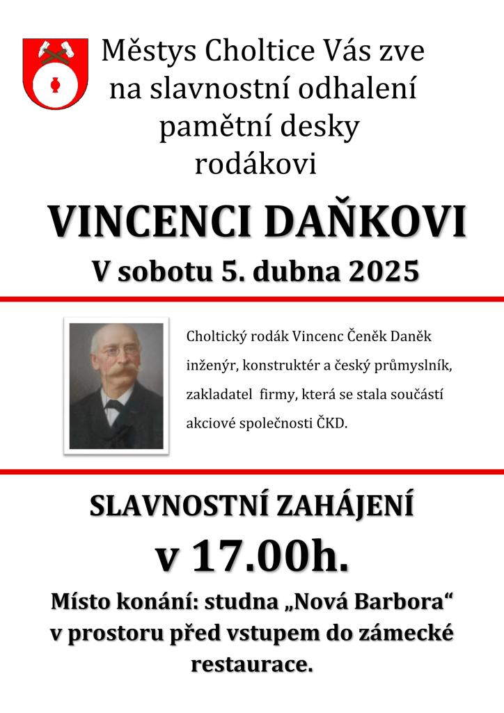 Slavnostní odhalení desky rodákovi Vincenci Daňkovi